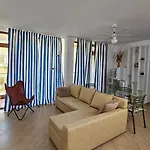 A fully equipped kitchen with a microwave, a refrigerator, and kitchenware is provided in the apartment, along with tea and coffee making equipment. The nearest bus stop to the 90 m^2 apartment is Tedi yalta, which is about a 5-minute walk away. There is a seasonal outdoor swimming pool for guests to relax in.